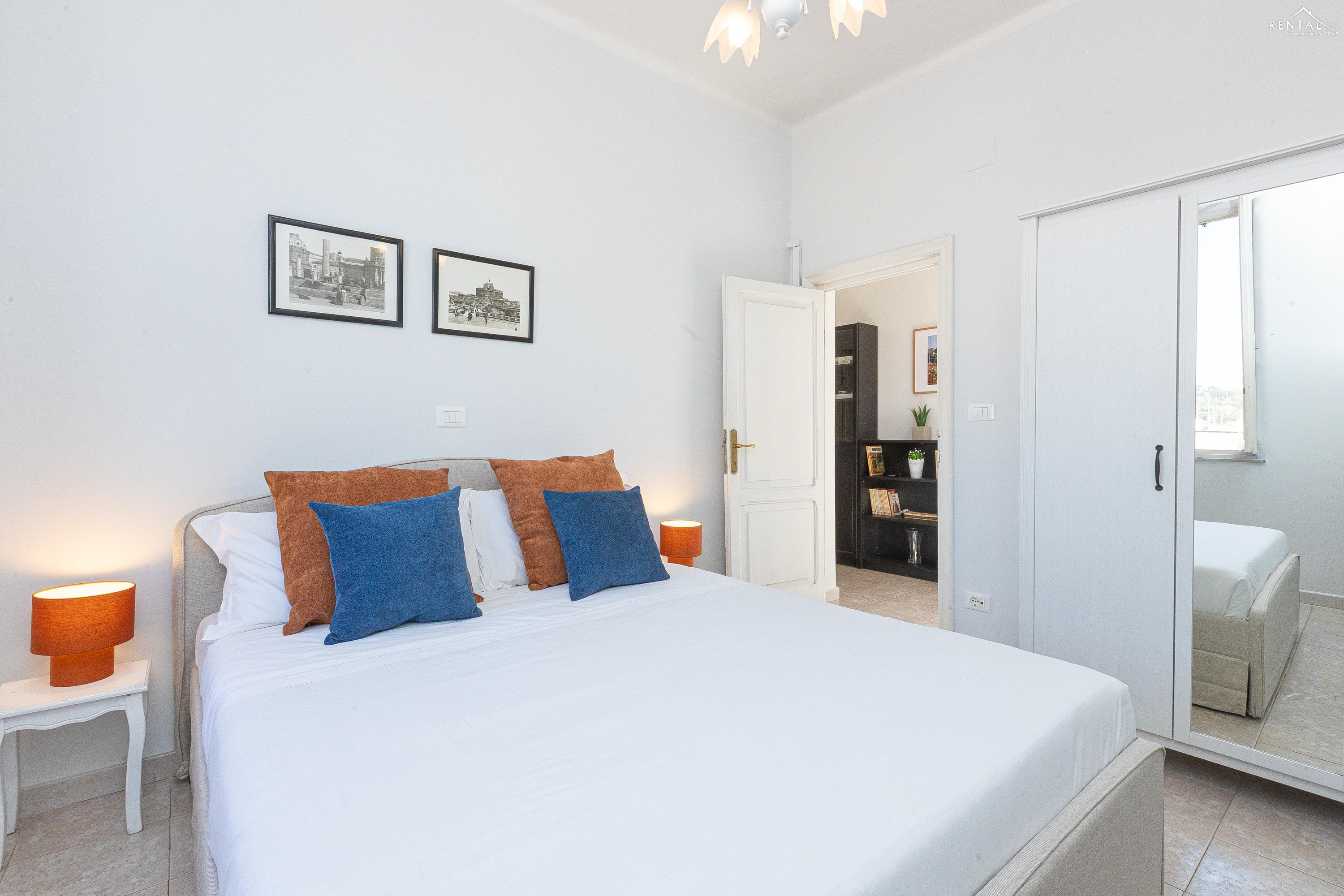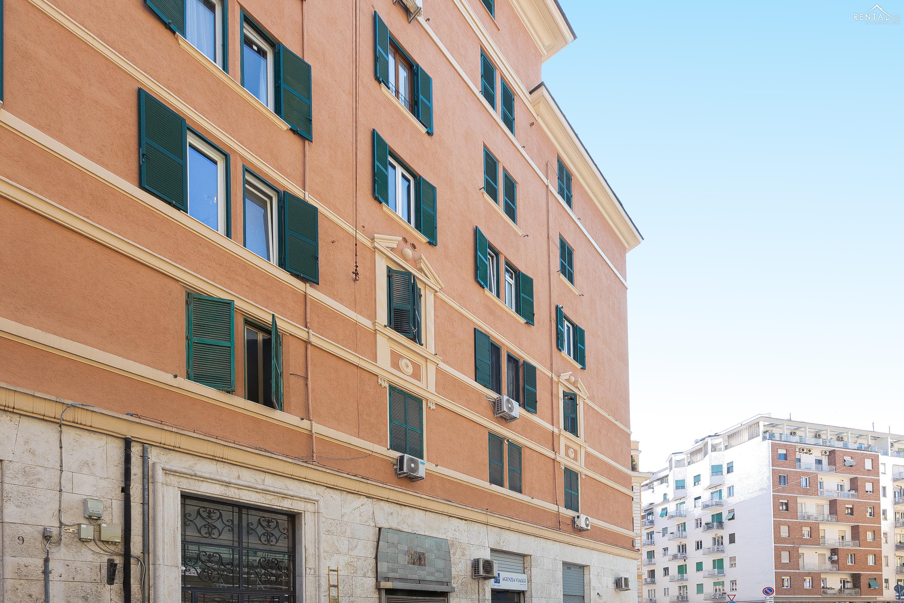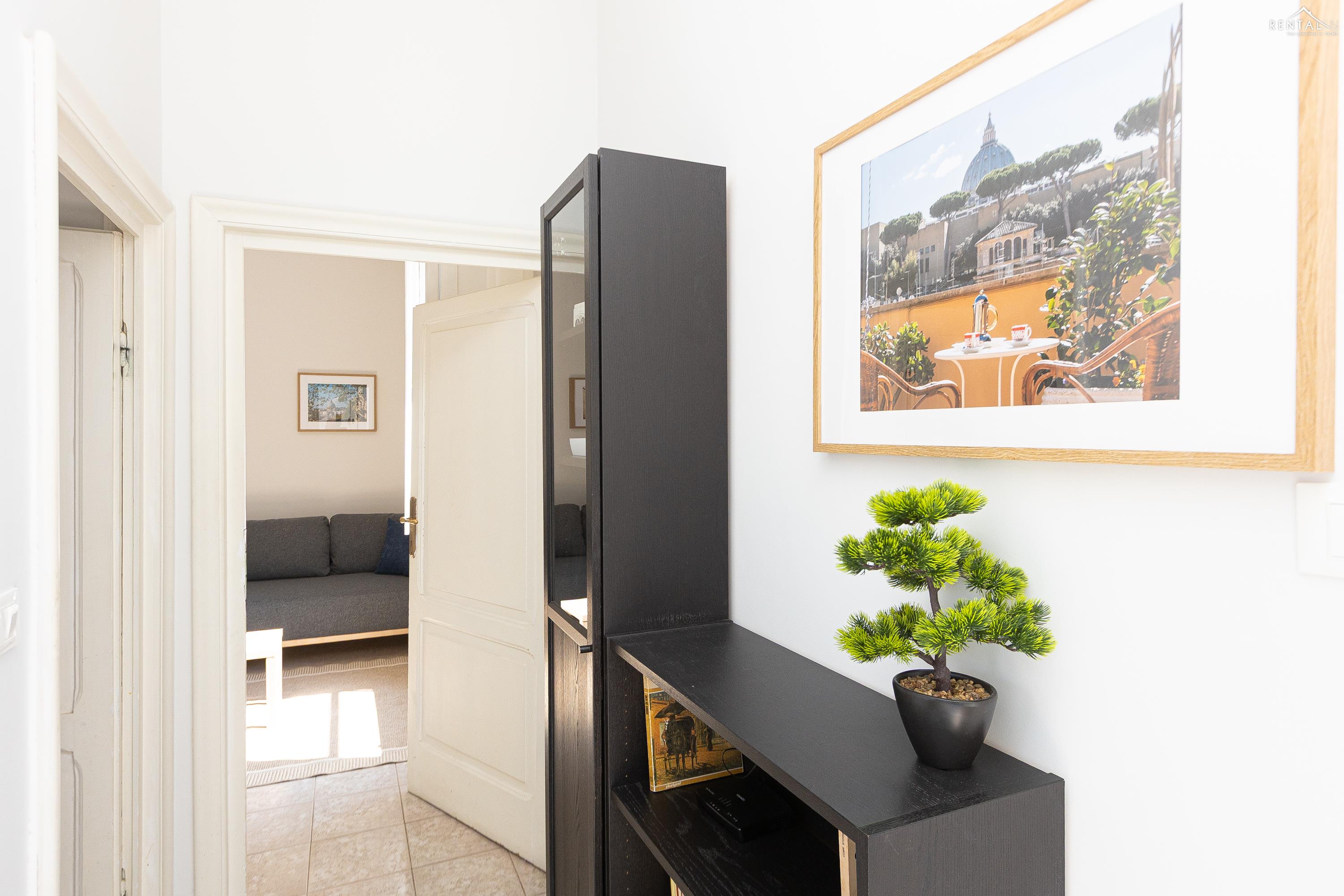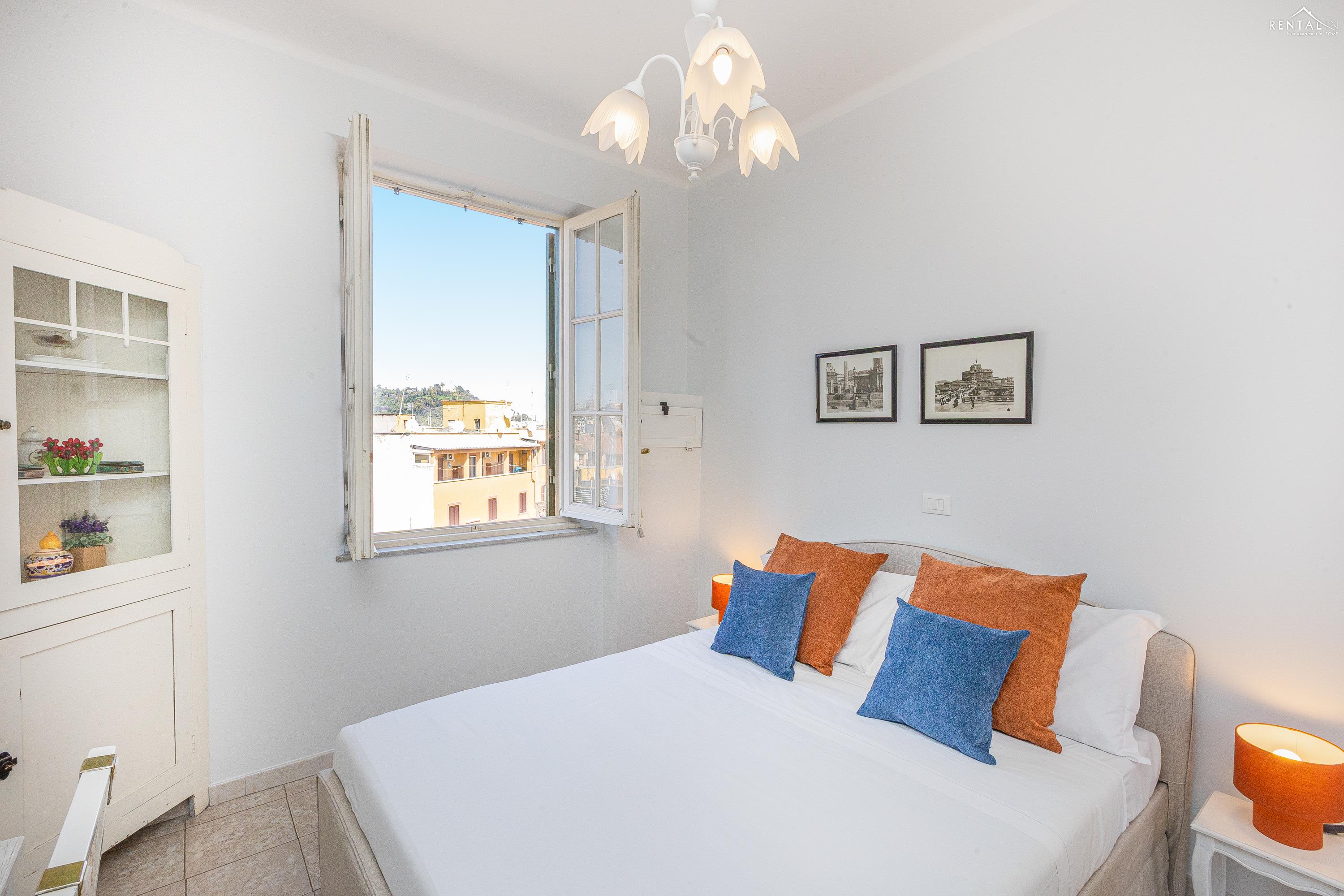 Gezellig appartement op de zevende verdieping van een gebouw met lift in Via la Goletta, in de elegante wijk Prati, op korte afstand van Sint Pieter Basiliek en de Vaticaanse Musea. Het is ingericht op een manier die modern en functioneel combineert en bestaat uit een slaapkamer met tweepersoonsbed, een woonkamer met een slaapbank en een keuken met moderne apparatuur, een badkamer met douche en een groot terras, ideaal om buiten te eten of te ontspannen de zon met een prachtig uitzicht over de daken van de stad en de koepel van de Sint Pieter. De voorzieningen zijn WiFi, een lcd-tv, een wasmachine en een kluisje. De centrale ligging met goede bereikbaarheid met het openbaar vervoer (metrolijn A Cipro is dichtbij) maakt het bij uitstek geschikt voor een aangename vakantie in de Eeuwige Stad.