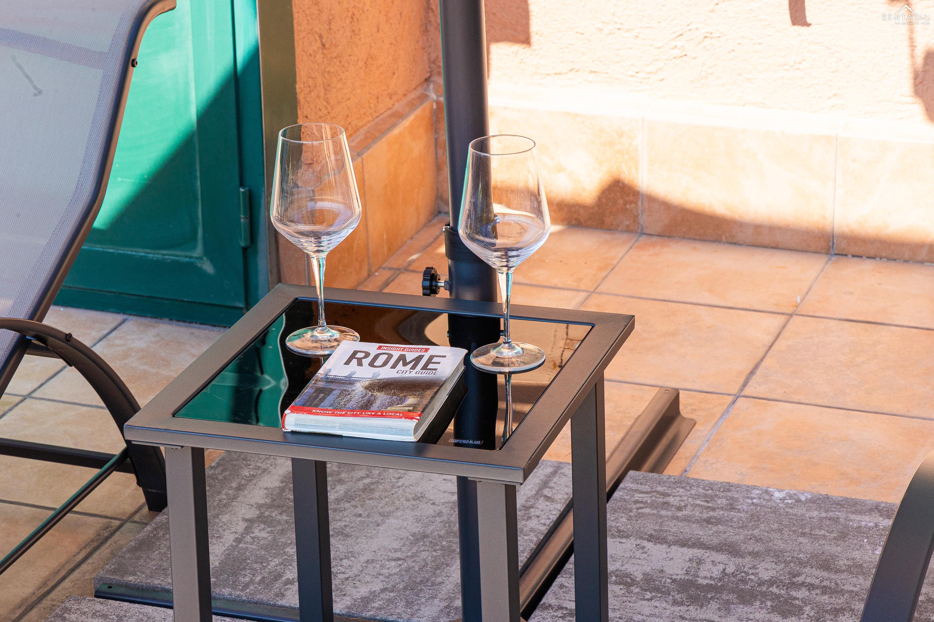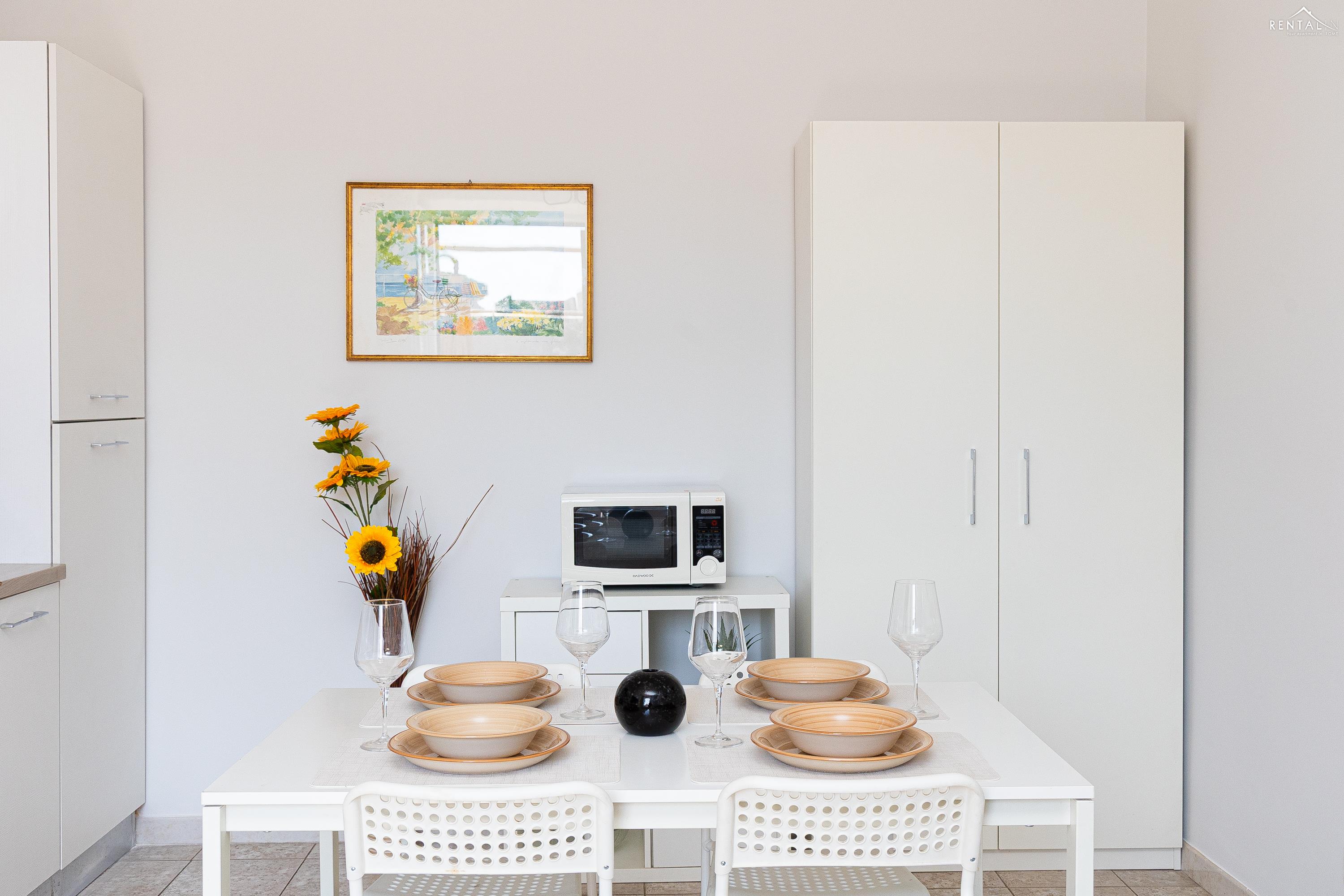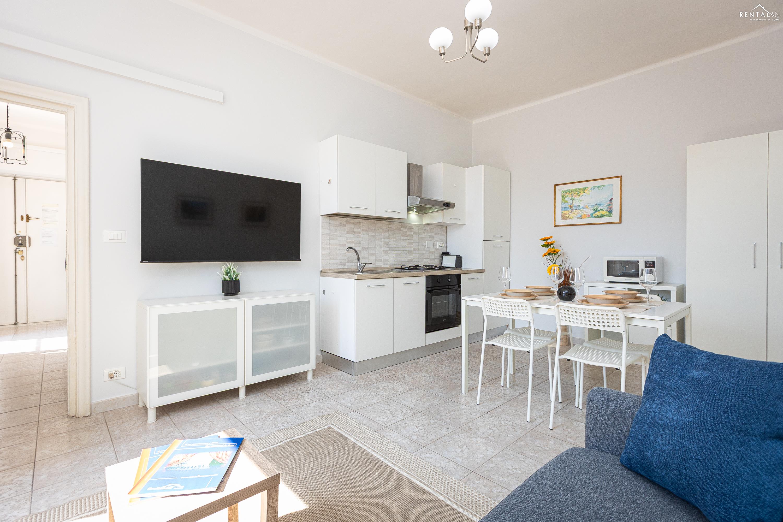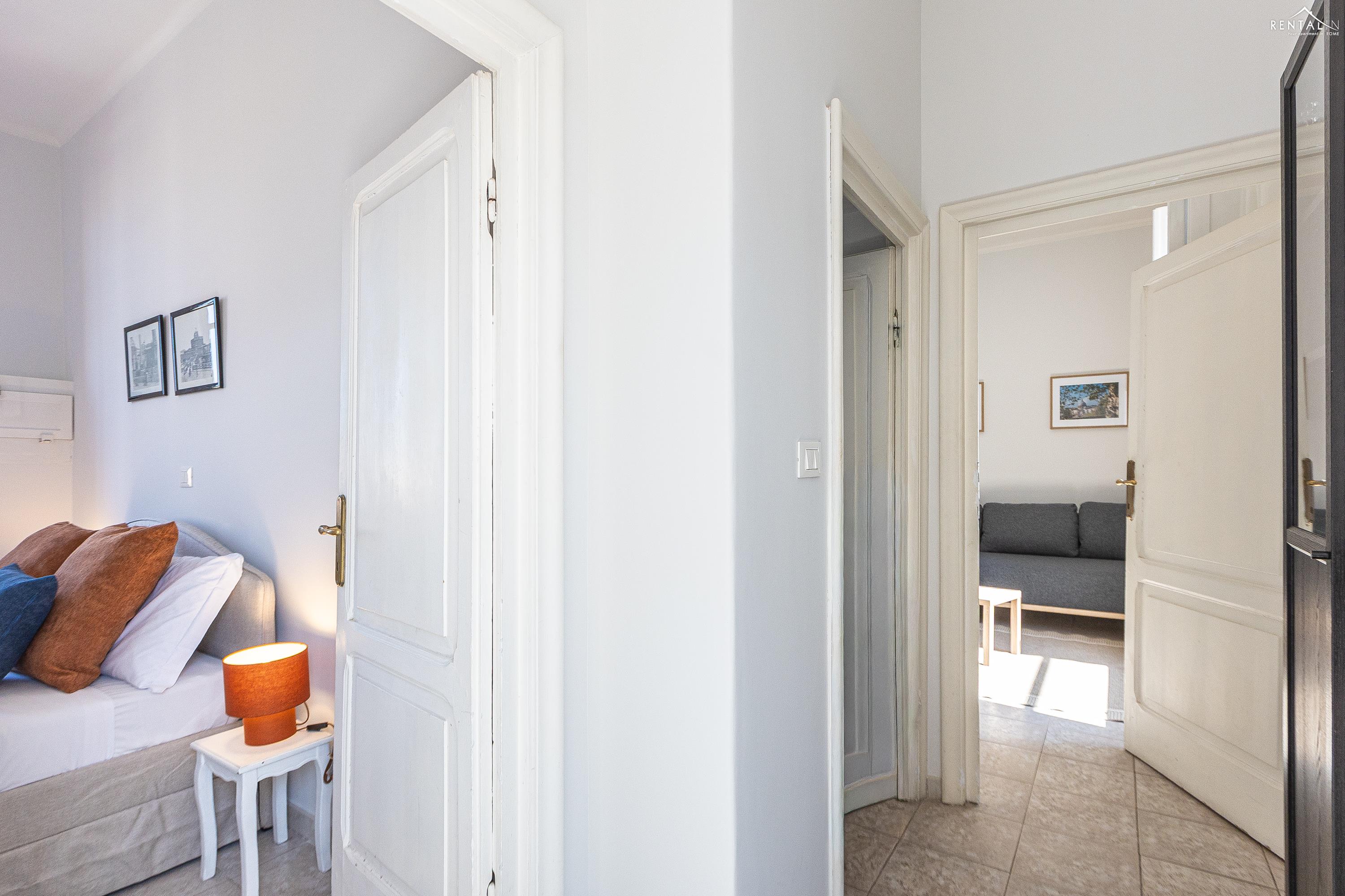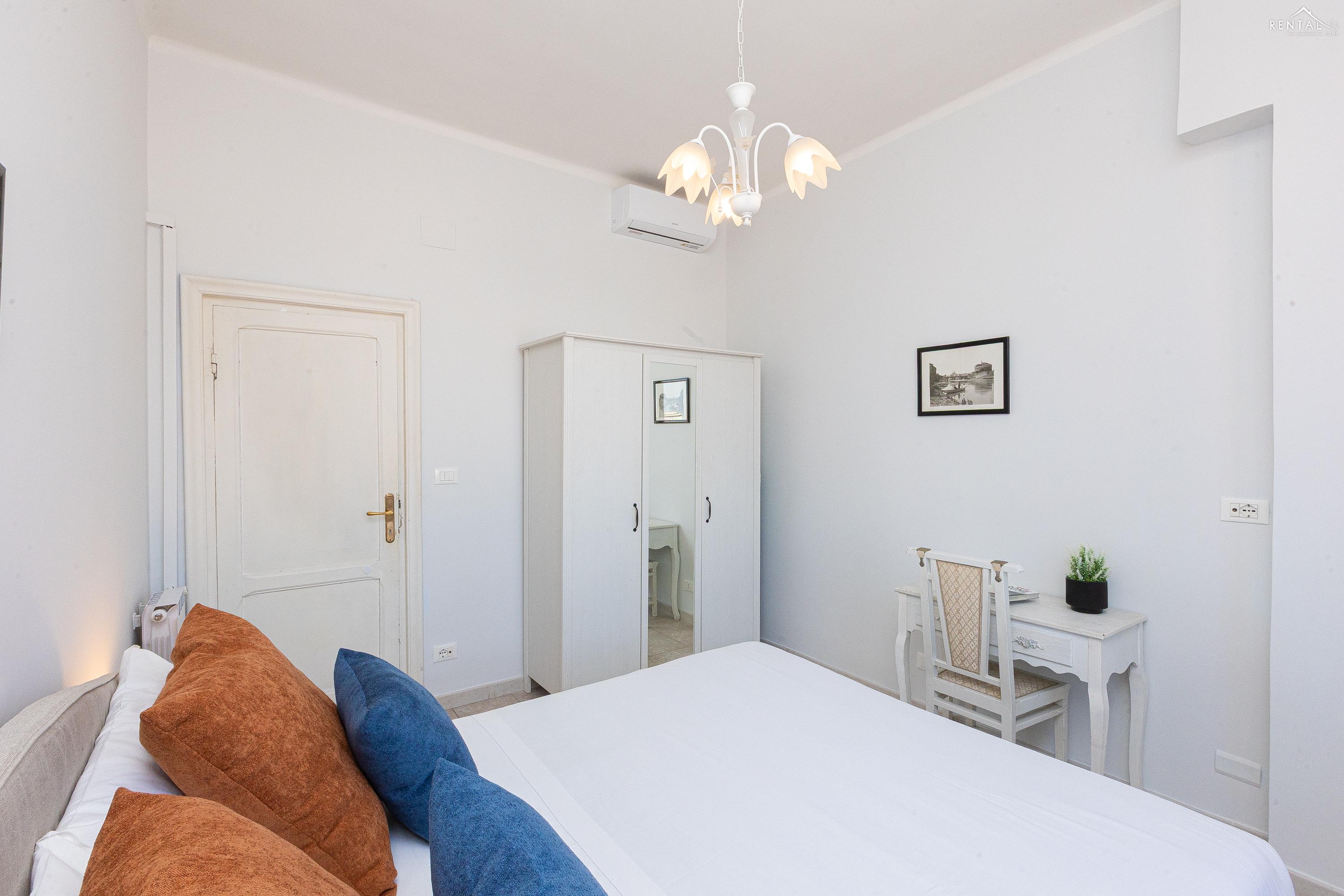 Gezellig appartement op de zevende verdieping van een gebouw met lift in Via la Goletta, in de elegante wijk Prati, op korte afstand van Sint Pieter Basiliek en de Vaticaanse Musea. Het is ingericht op een manier die modern en functioneel combineert en bestaat uit een slaapkamer met tweepersoonsbed, een woonkamer met een slaapbank en een keuken met moderne apparatuur, een badkamer met douche en een groot terras, ideaal om buiten te eten of te ontspannen de zon met een prachtig uitzicht over de daken van de stad en de koepel van de Sint Pieter. De voorzieningen zijn WiFi, een lcd-tv, een wasmachine en een kluisje. De centrale ligging met goede bereikbaarheid met het openbaar vervoer (metrolijn A Cipro is dichtbij) maakt het bij uitstek geschikt voor een aangename vakantie in de Eeuwige Stad.