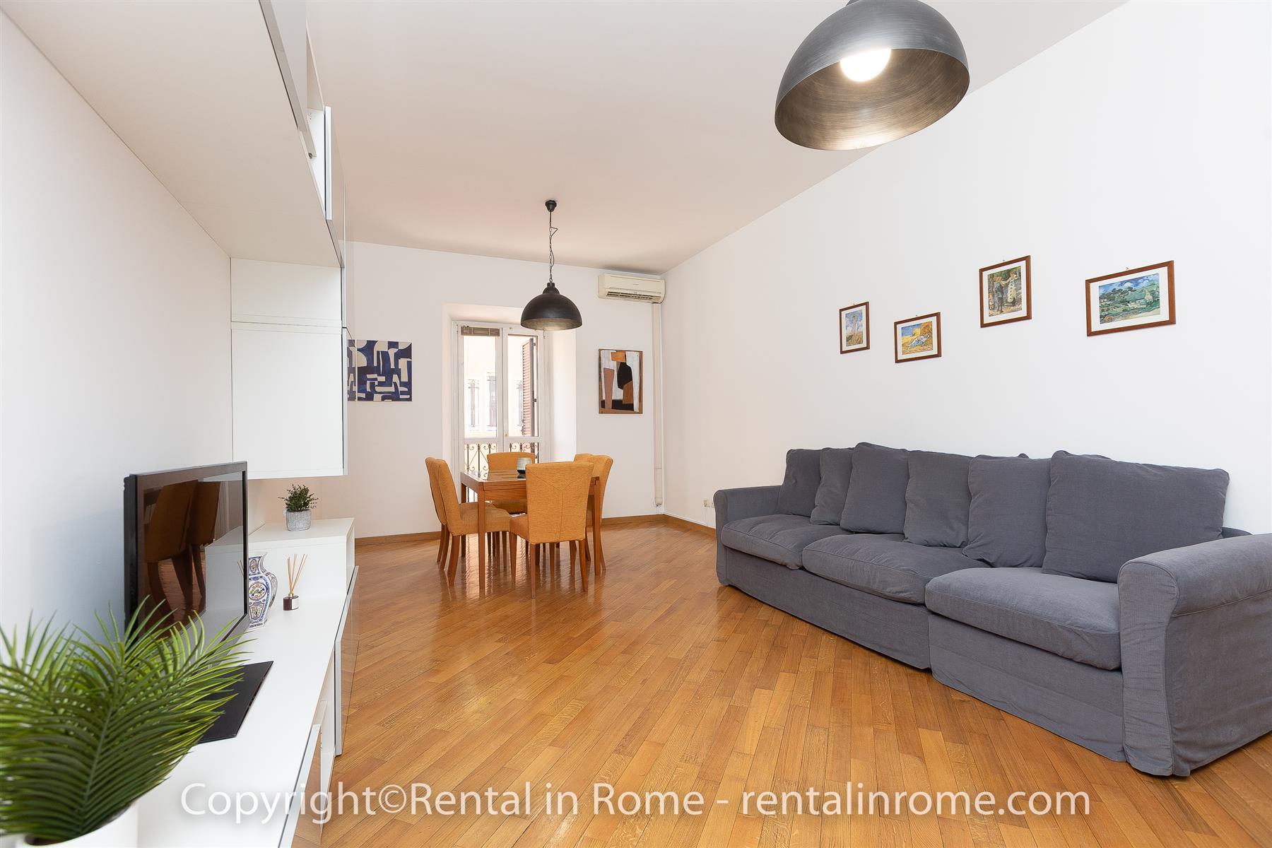 Wunderbare Wohnung im zweiten Stock mit Aufzug eines Gebäudes in der Viale Giulio Cesare, nicht weit von den bequemen U-Bahnstationen "Lepanto" und "Ottaviano" entfernt, nur wenige Schritte vom Petersdom und den Vatikanischen Museen entfernt. Die Wohnung ist mit einem minimalistischen Design und sehr funktionalem Stil eingerichtet. Sie besteht aus einer großen Eingangshalle mit einem schönen Marmorboden, der charakteristisch für die Häuser im Stadtteil Prati ist, von hier aus gelangen Sie in ein erstes und großes Schlafzimmer mit Doppelbett, ein zweites Schlafzimmer mit zwei Einzelbetten und eigenem Badezimmer mit Dusche, gefolgt von einem dritten Schlafzimmer mit Doppelbett und einem zweiten Badezimmer mit Dusche. Ein fabelhaftes Wohnzimmer mit Parkettboden und eine große Wohnküche runden die Wohnung ab. Dieses prächtige Apartment ist ausgestattet mit Waschmaschine, Internetanschluss, Klimaanlage in allen Zimmern und einer zentralen und gut angebundenen Lage, von der aus Sie in wenigen Minuten die beliebtesten Gegenden Roms wie die Spanische Treppe erreichen können. der Trevi-Brunnen, dank der Anwesenheit des unterirdischen "Lepanto", der sich nur wenige Schritte entfernt befindet. Dieses Anwesen stellt eine hervorragende Lösung für eine Familie oder eine Gruppe von Freunden dar, die einen wunderschönen Urlaub in der Ewigen Stadt verbringen möchten.