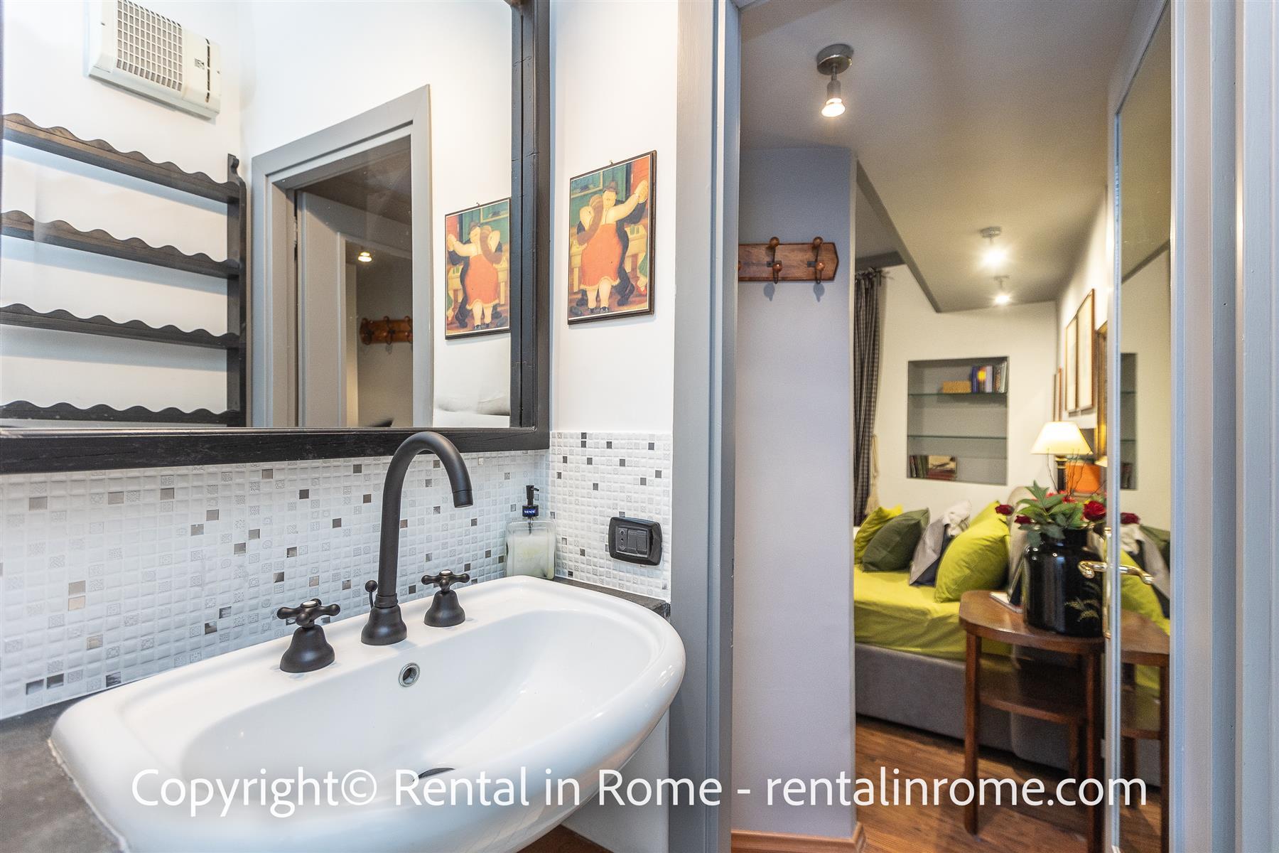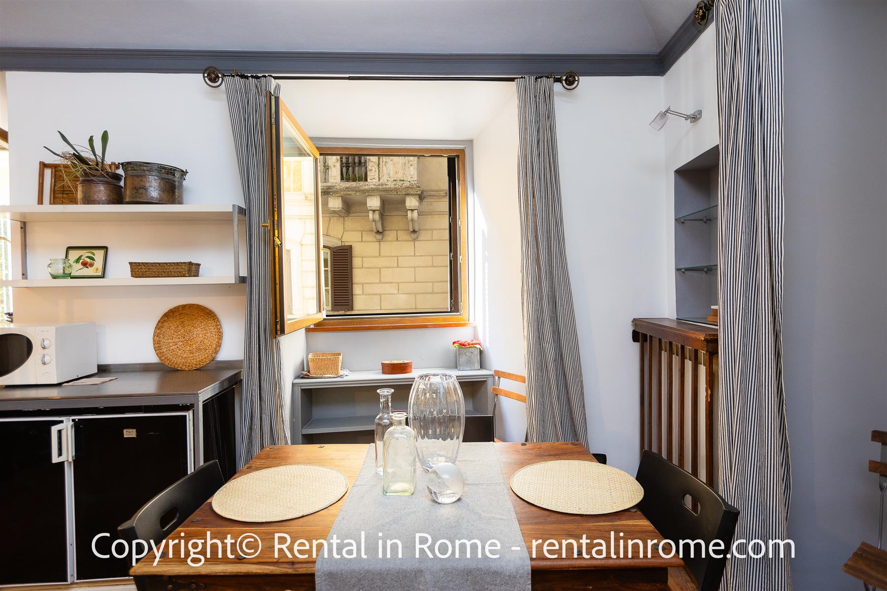 Het appartement bestaat uit een eerste slaapkamer met badkamer met douche, via een trap komt u in het woongedeelte bestaande uit een bank en een kitchenette, de woonkamer is ingericht met klassieke en moderne elementen, die deze omgeving allemaal zeer warm en comfortabel maken Het woongedeelte heeft drie prachtige ramen met uitzicht op de Romeinse steegjes. Vanuit de woonkamer komt u in de hoofdslaapkamer met en-suite badkamer. De woning is voorzien van alle gemakken zoals airconditioning, smart TV, wasmachine. De schoonheid van dit appartement samen met de unieke locatie maken dit pand perfect voor koppels of gezinnen die een verblijf willen doorbrengen in het historische centrum van Rome op een steenworp afstand van het Pantheon.