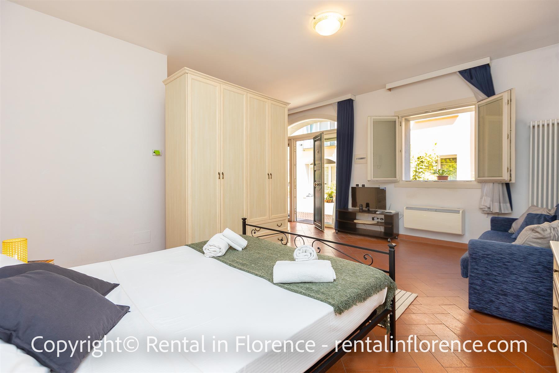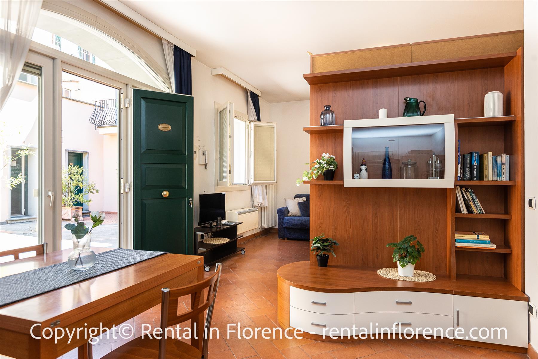 Apartament superb situat la parter în interiorul celebrului Palazzo Virginio din via Ghibellina, lângă muzeul Bargello și la câțiva pași de principalele atracții turistice precum Domul, Piazza della Signoria, Galeria Uffizi și Ponte Vecchio. La Piazza Santa Croce se poate ajunge în doar 5 minute de mers pe jos. Mobilat cu un stil care îmbină cu pricepere elementele clasice și moderne, cum ar fi frumoasa podea din teracotă florentină. Apartamentul este format dintr-o zonă de living cu o canapea extensibilă dublă, o chicinetă complet utilată și o masă, o zonă de dormit cu un pat dublu și o baie cu duș. Apartamentul este dotat cu internet WIFI gratuit, TV digital, aer conditionat, incalzire, fier si masa de calcat, uscator de par. În interiorul clădirii există o zonă convenabilă de spălătorie dotată cu mașini de spălat rufe la dispoziția tuturor oaspeților. Locație excelentă pentru vizitarea orașului pe jos sau cu bicicleta, potrivită pentru toate tipurile de sejur în frumosul oraș Florența.