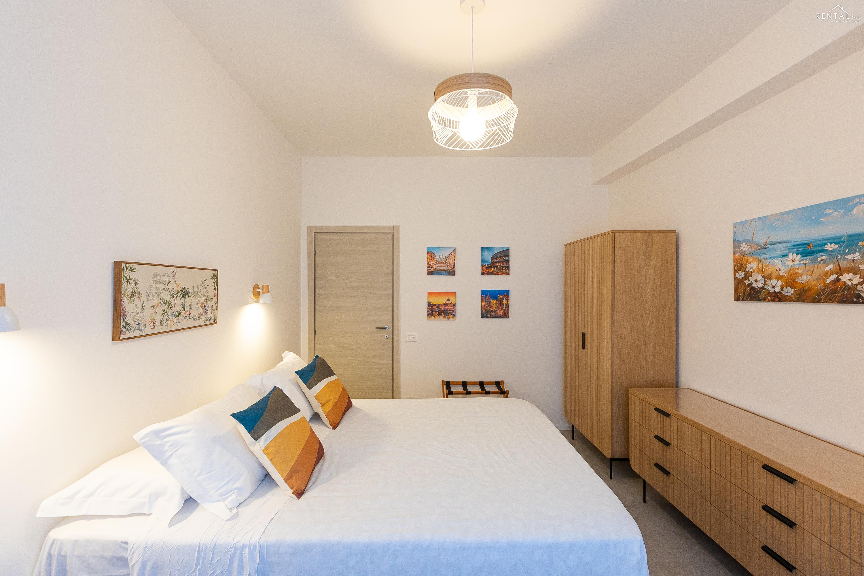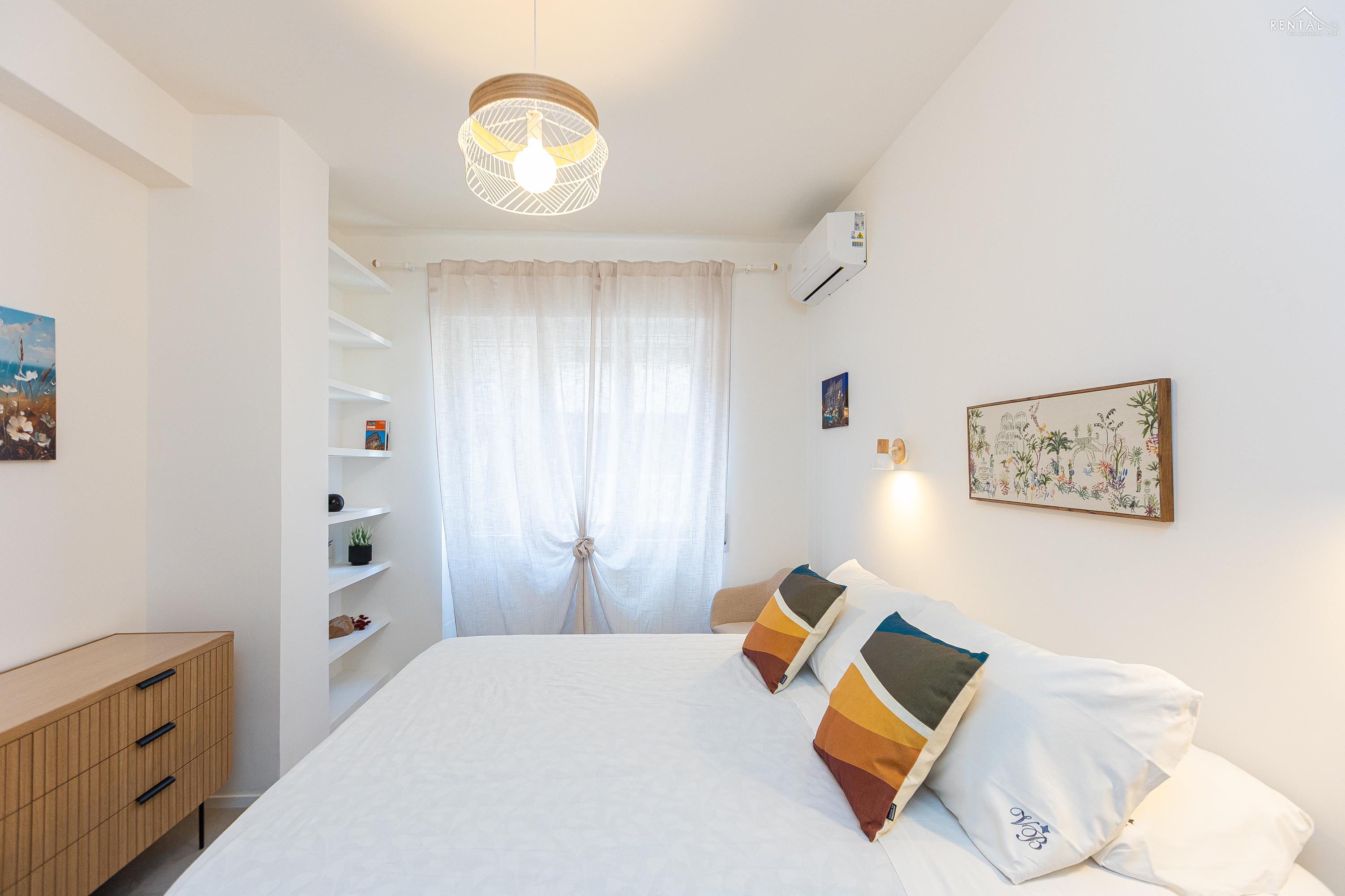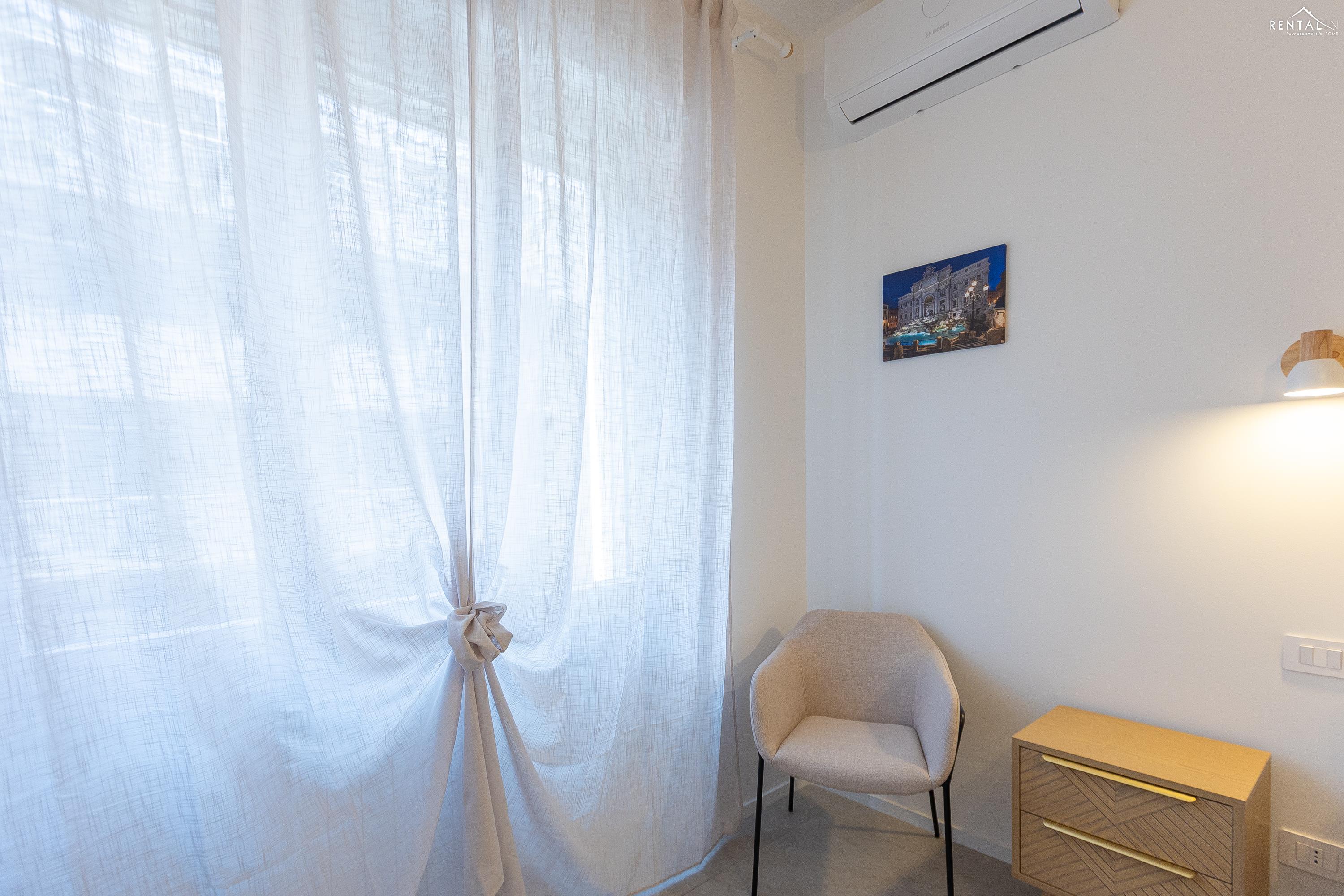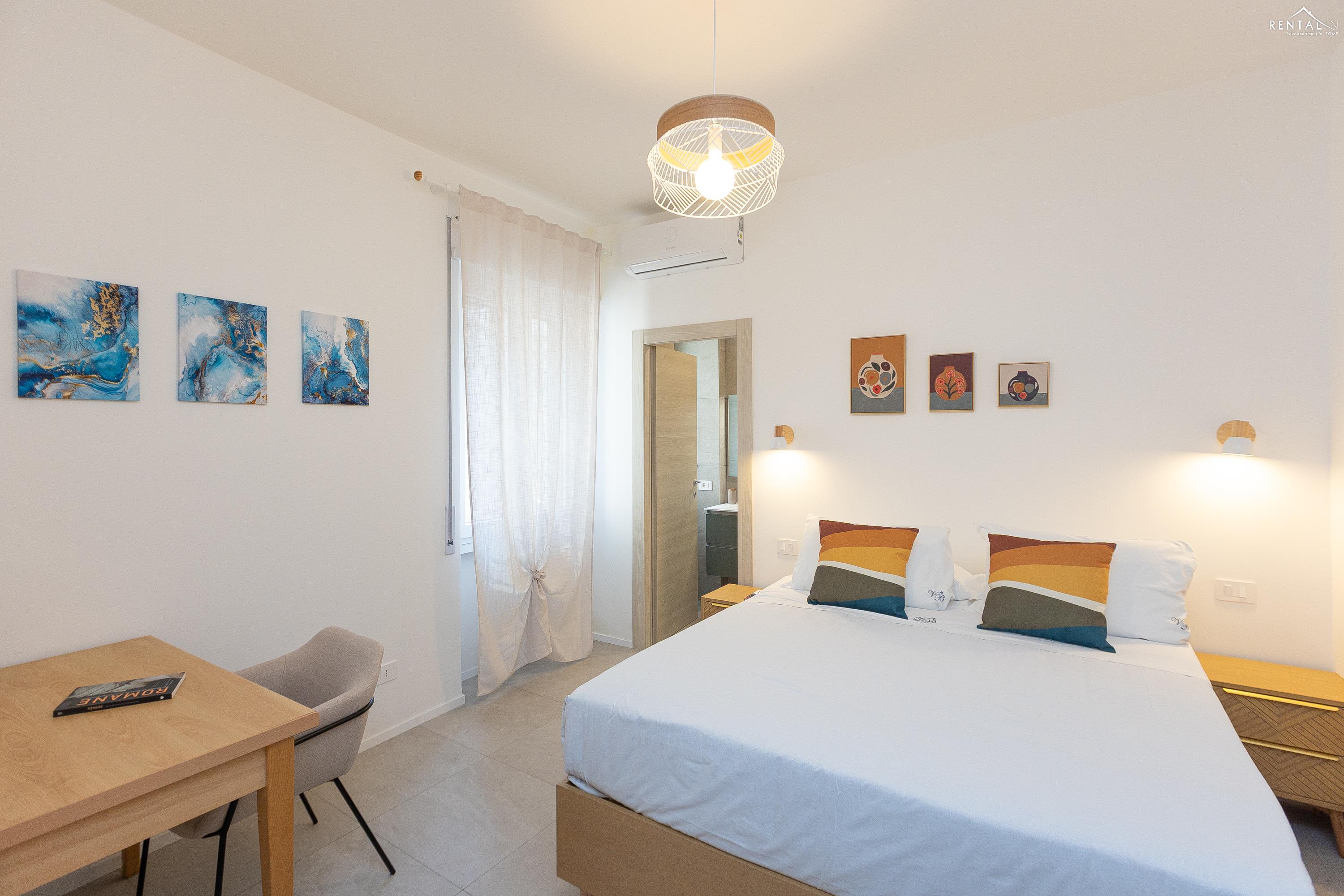 Appartement moderne et fonctionnel situé dans le quartier de Prati, à deux pas de la station de métro Cipro. Récemment rénové, ce logement se trouve au cinquième étage d'un immeuble sans concierge et équipé d'un ascenseur. Il comprend un séjour spacieux avec coin repas (table et chaises), une kitchenette entièrement équipée, un canapé-lit et une télévision. Le séjour donne accès à un agréable balcon spacieux. L'espace nuit se compose d'une première chambre avec un lit double et une salle de bain attenante (douche), suivie d'une deuxième chambre avec un lit double et d'une troisième chambre avec deux lits simples. Une deuxième salle de bain avec douche complète ce bel appartement moderne. Il est équipé de tout le confort moderne, notamment la climatisation, le Wi-Fi, une smart TV, un lave-linge séchant et un lave-vaisselle. Le quartier regorge de restaurants, bars et supermarchés. C'est la solution idéale pour les familles ou les groupes d'amis souhaitant séjourner dans la Ville Éternelle.