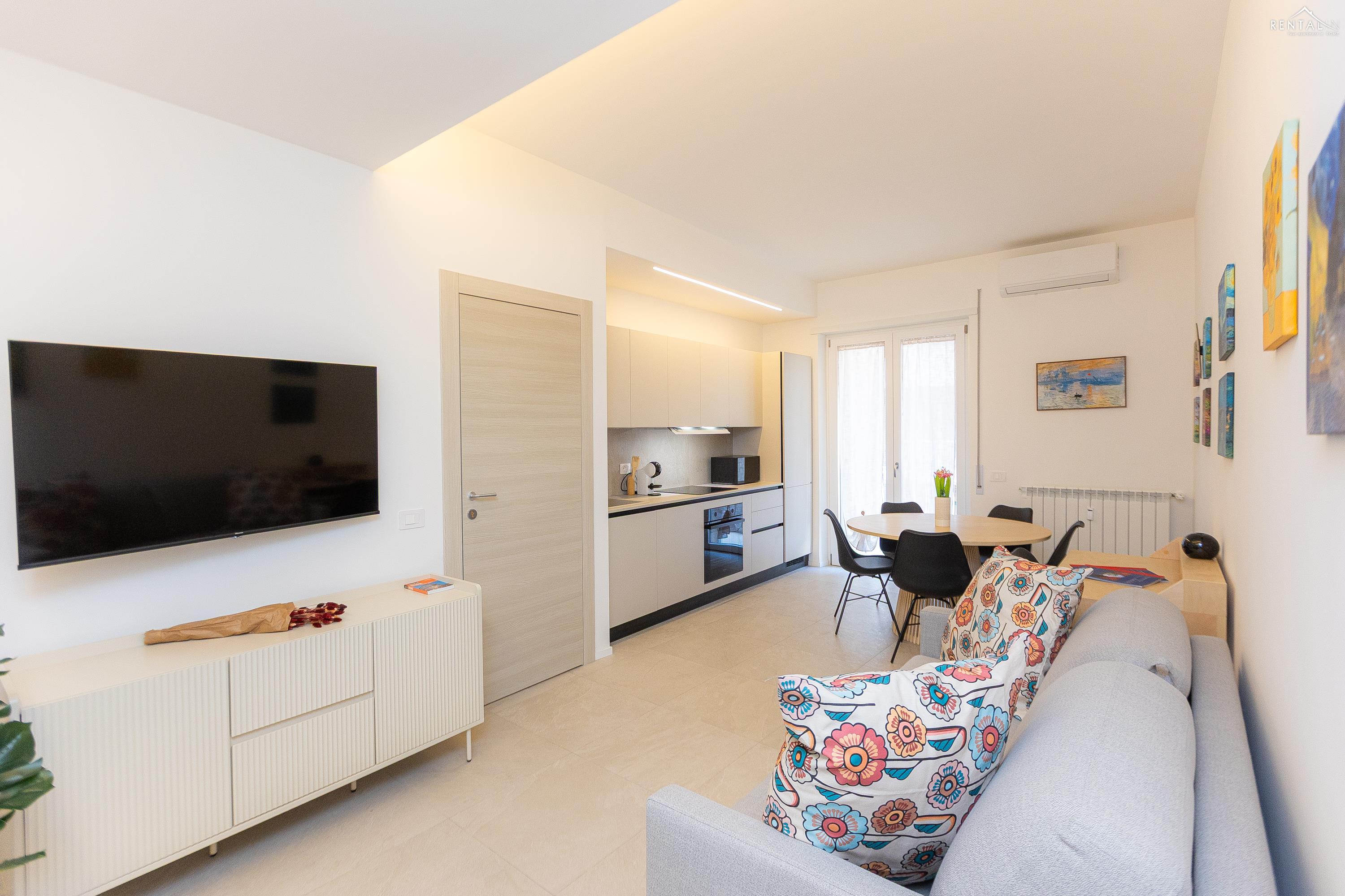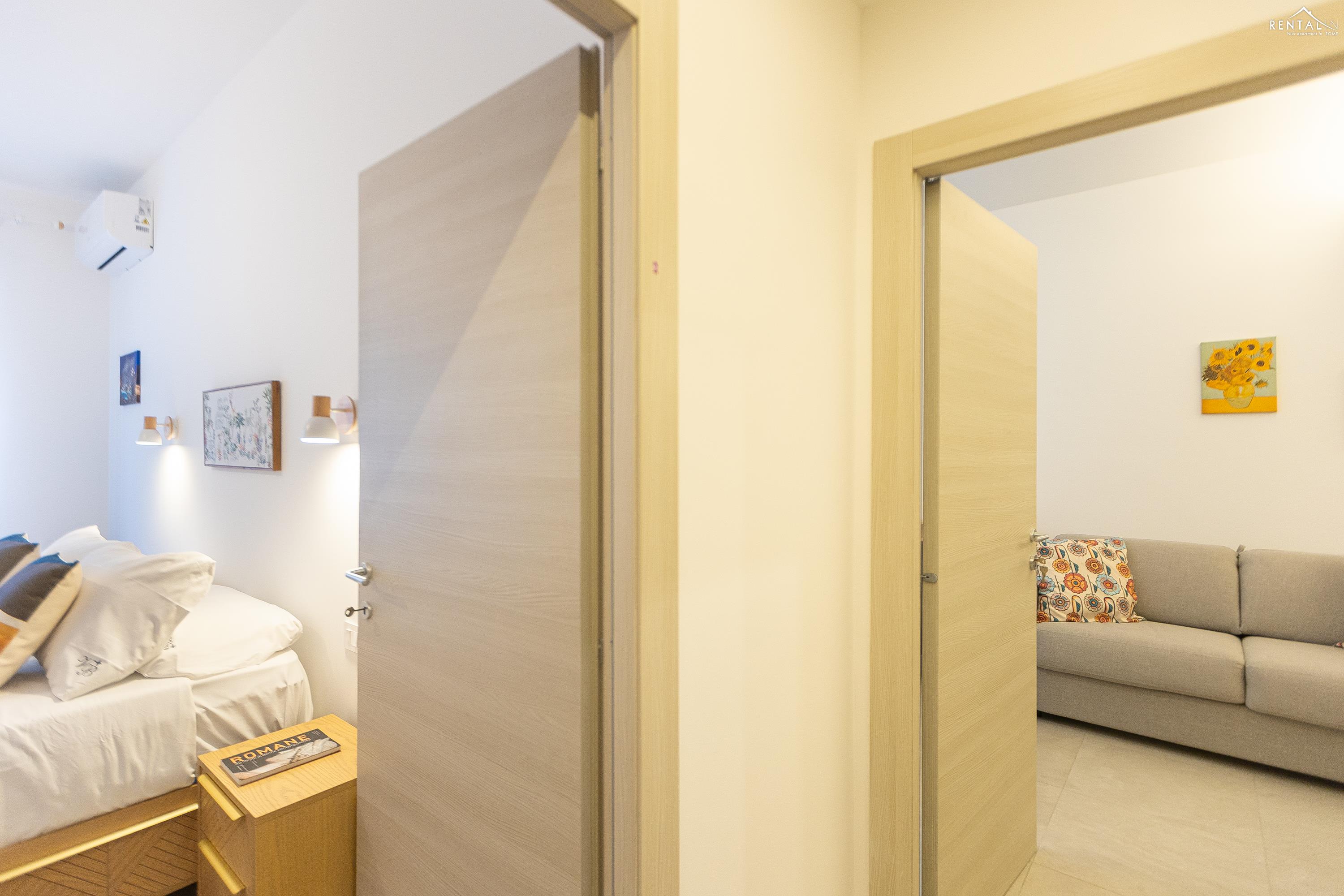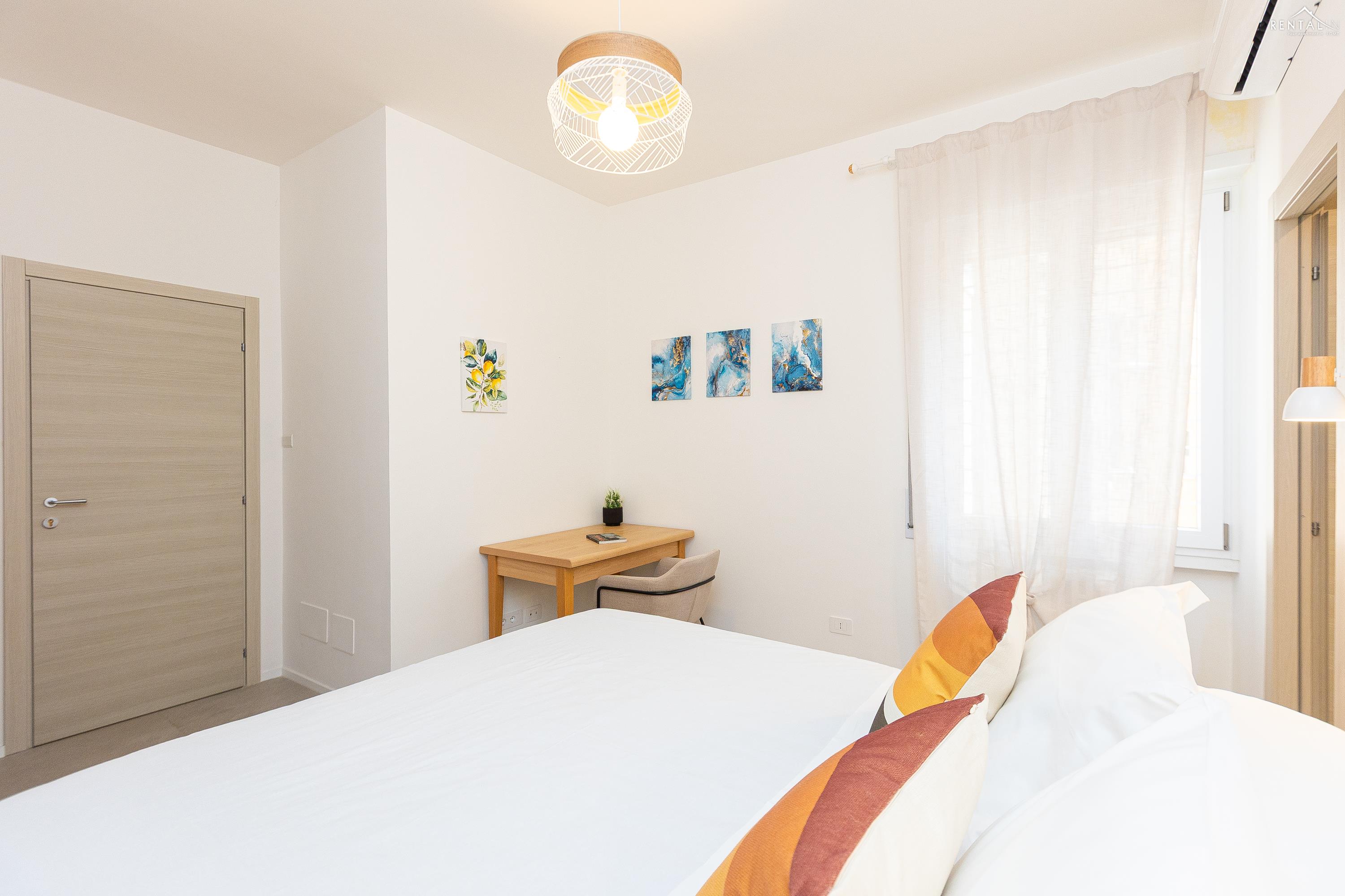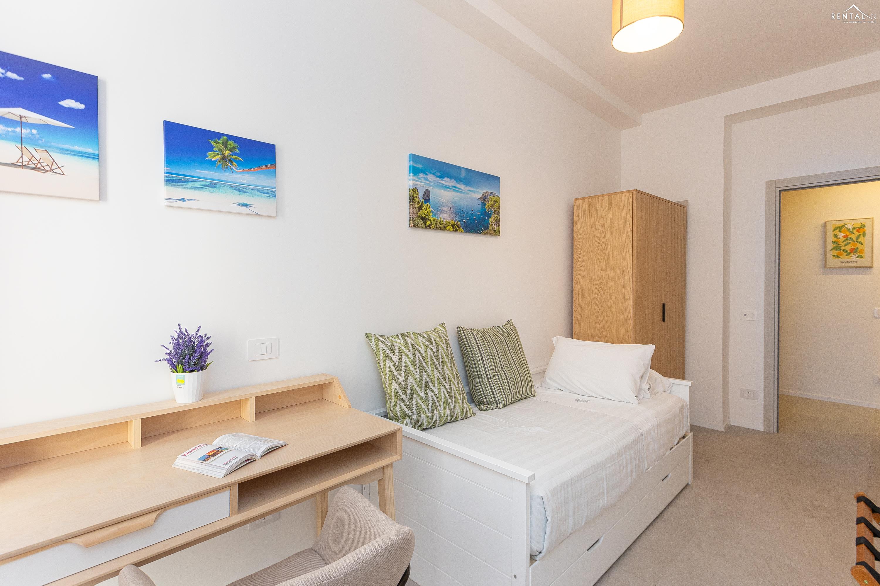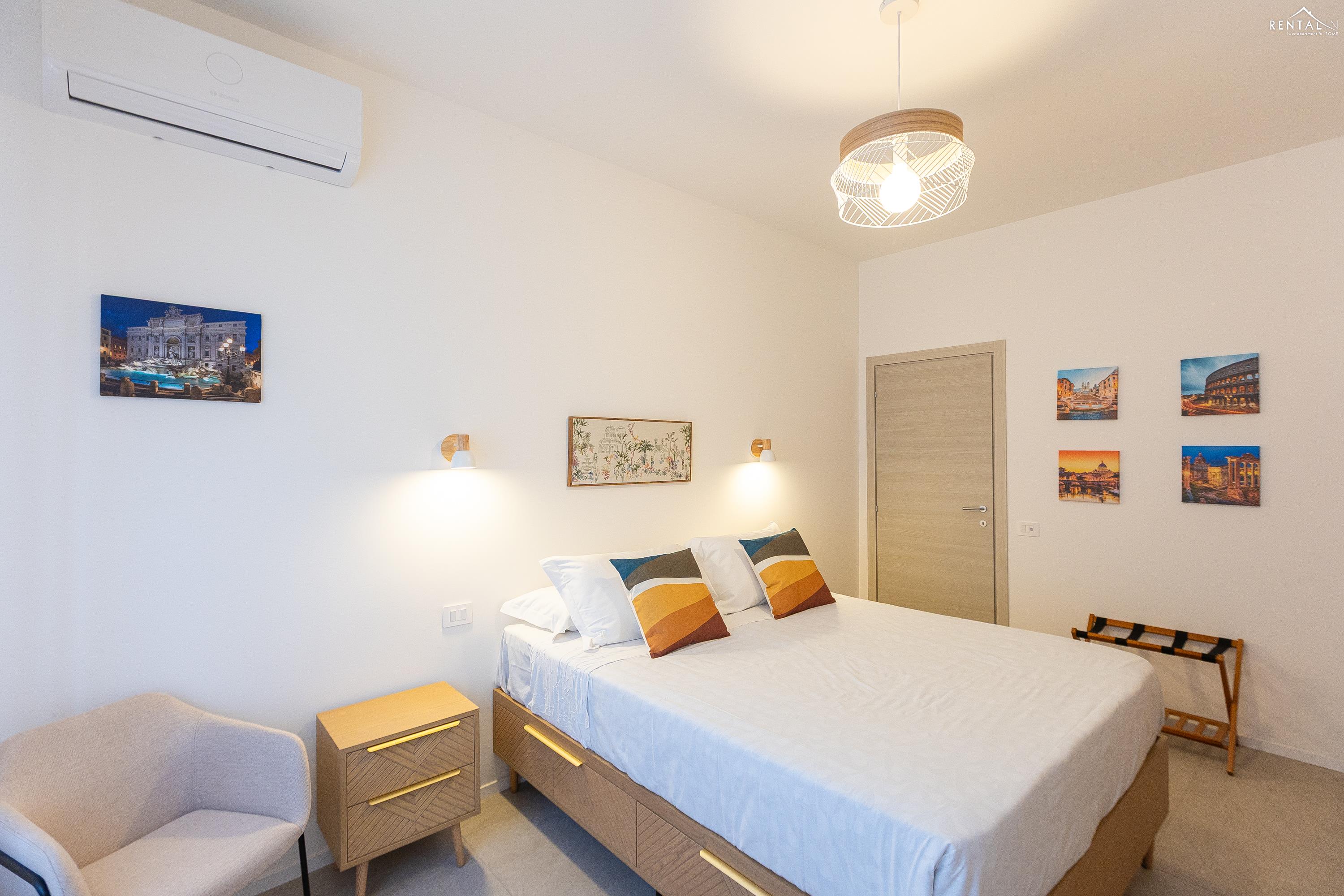 Appartement moderne et fonctionnel situé dans le quartier de Prati, à deux pas de la station de métro Cipro. Récemment rénové, ce logement se trouve au cinquième étage d'un immeuble sans concierge et équipé d'un ascenseur. Il comprend un séjour spacieux avec coin repas (table et chaises), une kitchenette entièrement équipée, un canapé-lit et une télévision. Le séjour donne accès à un agréable balcon spacieux. L'espace nuit se compose d'une première chambre avec un lit double et une salle de bain attenante (douche), suivie d'une deuxième chambre avec un lit double et d'une troisième chambre avec deux lits simples. Une deuxième salle de bain avec douche complète ce bel appartement moderne. Il est équipé de tout le confort moderne, notamment la climatisation, le Wi-Fi, une smart TV, un lave-linge séchant et un lave-vaisselle. Le quartier regorge de restaurants, bars et supermarchés. C'est la solution idéale pour les familles ou les groupes d'amis souhaitant séjourner dans la Ville Éternelle.
