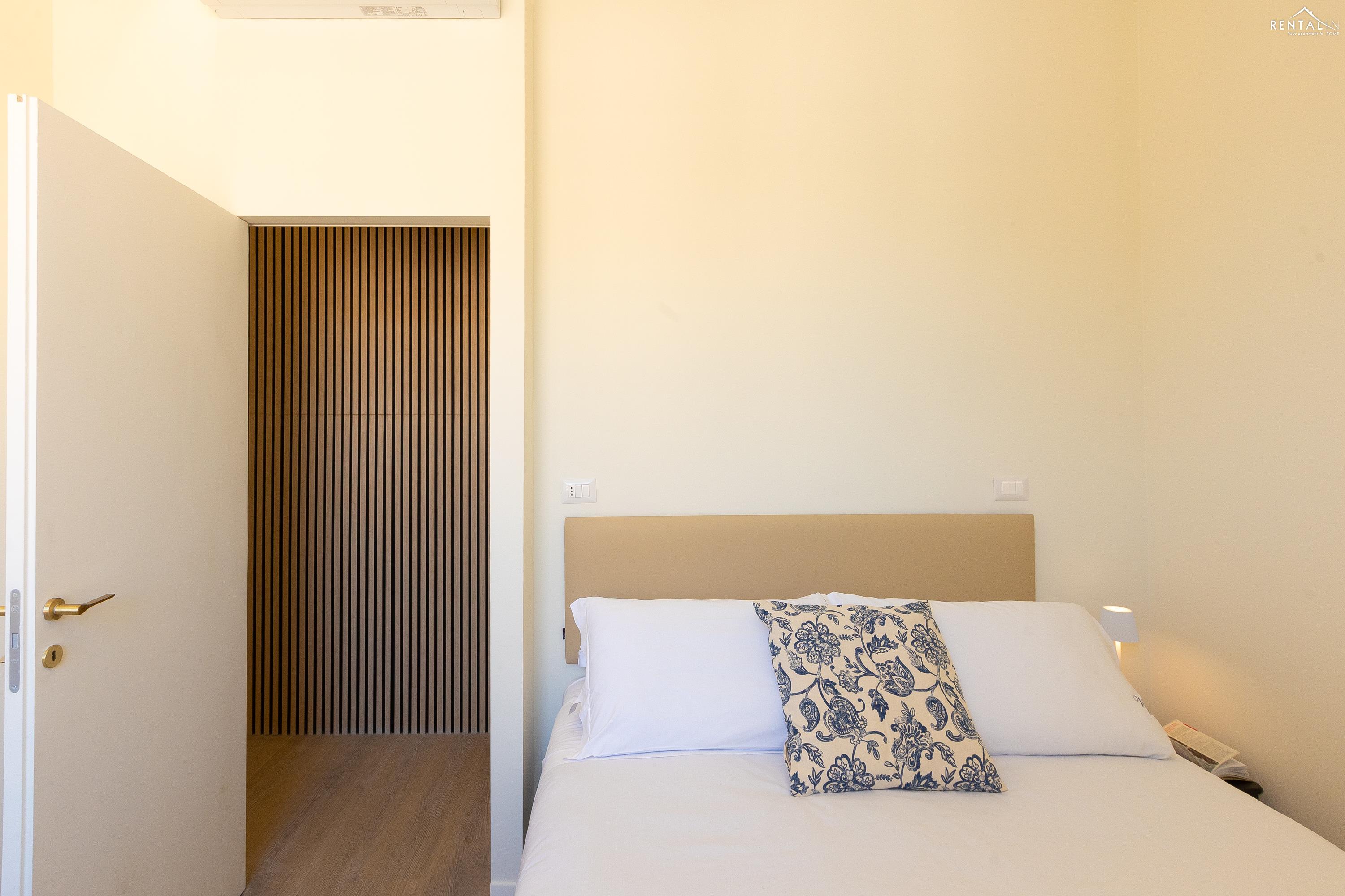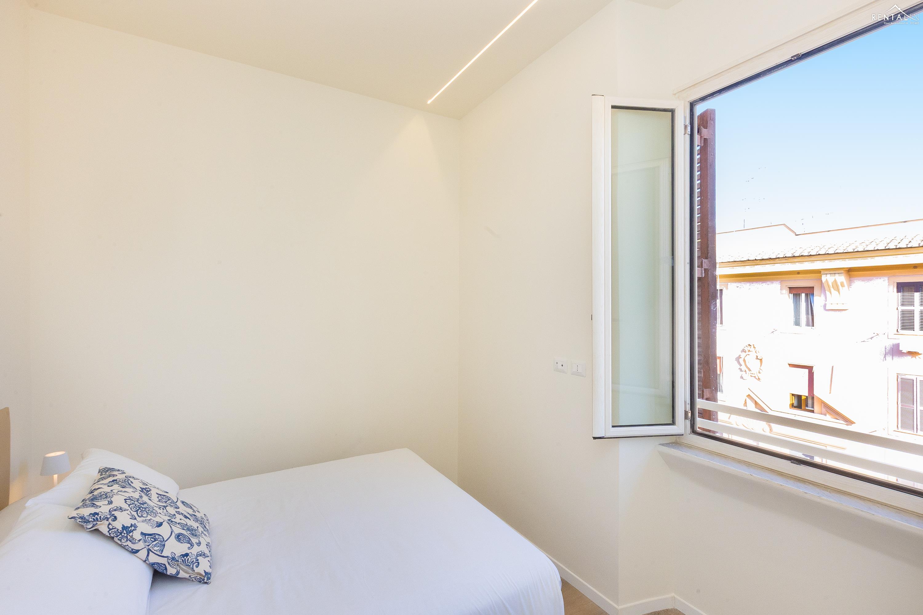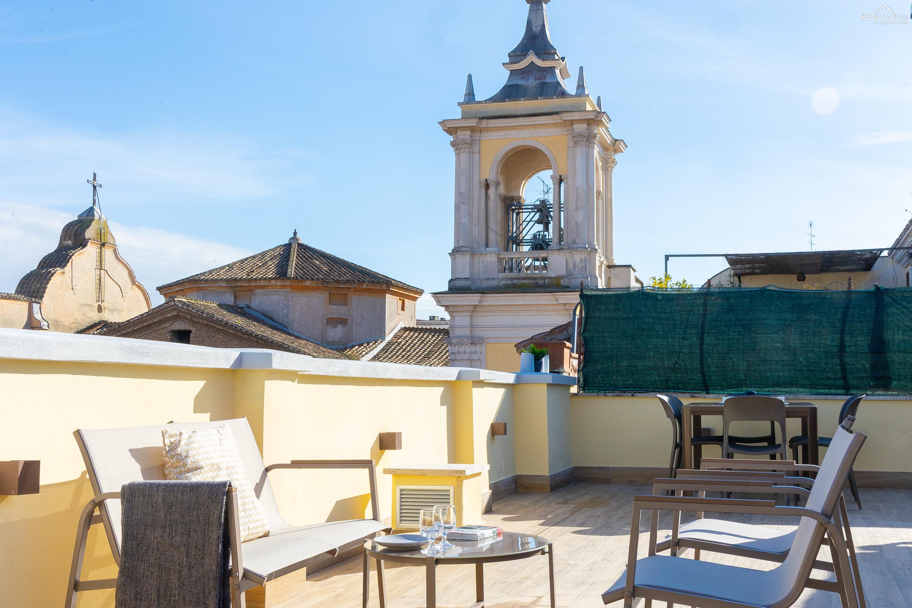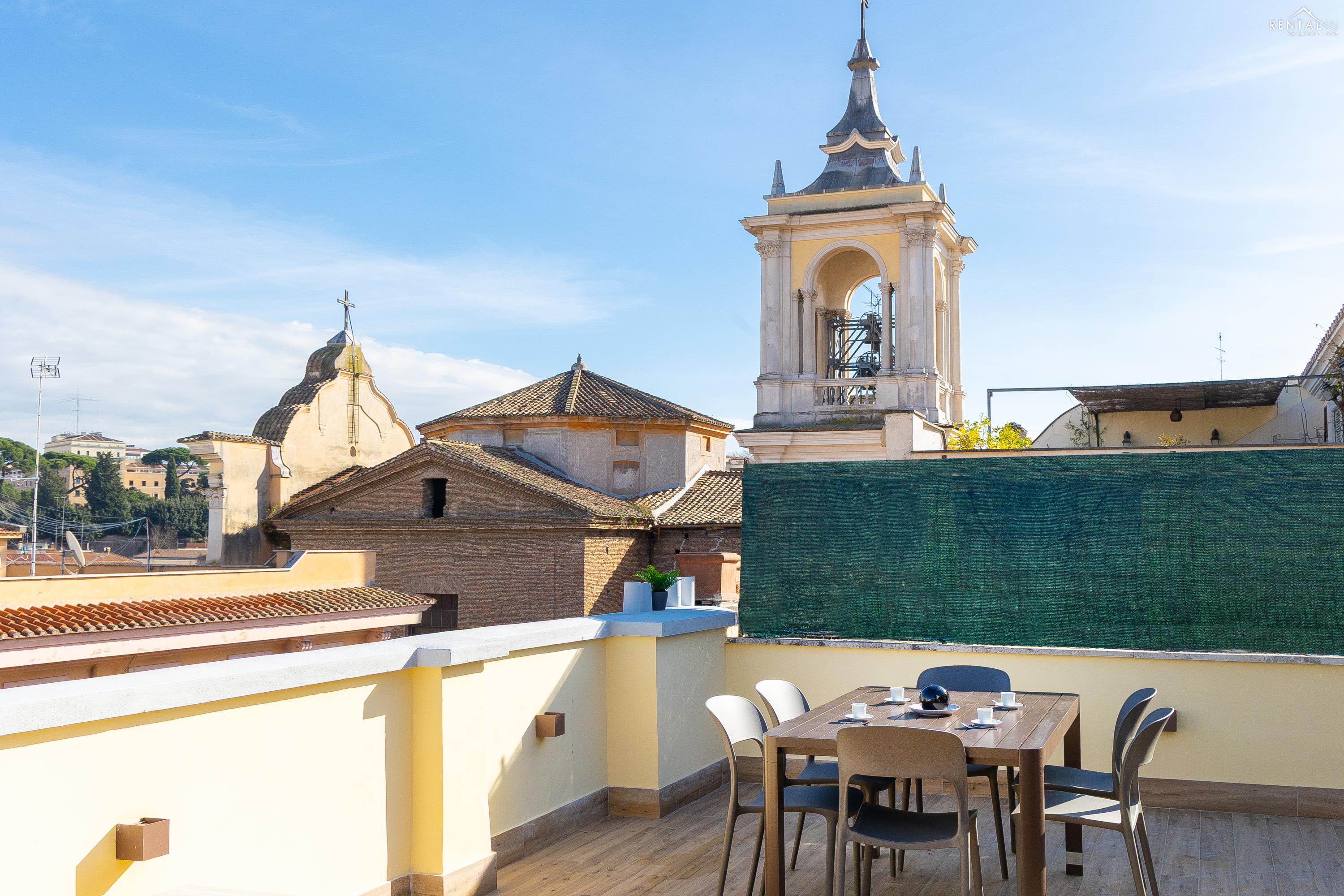 Cet élégant appartement se situe au cinquième étage d'un immeuble avec ascenseur et service de conciergerie, Via Nicolò III, à deux pas de la basilique Saint-Pierre, des musées du Vatican et de la gare de Roma San Pietro. Meublé dans un style moderne et baigné de lumière, il comprend deux chambres doubles confortables, un vaste séjour avec canapé-lit, une kitchenette entièrement équipée, une salle de bains avec douche et des toilettes invités avec douche. La terrasse, située au dernier étage et accessible par l'escalier commun ou par l'ascenseur intérieur, est idéale pour les repas en plein air et la détente au soleil, tout en offrant une vue splendide sur le dôme de Saint-Pierre. Ses équipements, tels que la climatisation, le Wi-Fi, une télévision, un lave-linge et un lave-vaisselle, ainsi que son emplacement central et sa proximité avec un réseau de transports en commun performant, en font le lieu idéal pour un merveilleux séjour dans la Ville Éternelle.