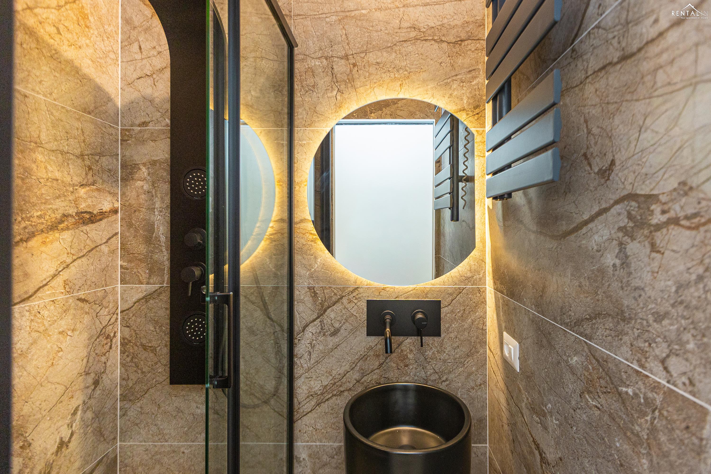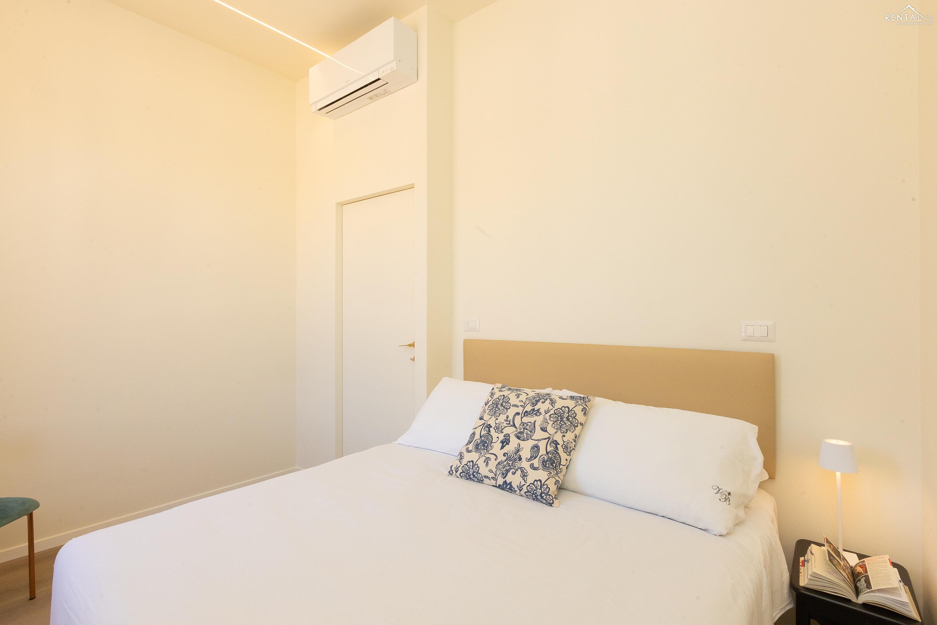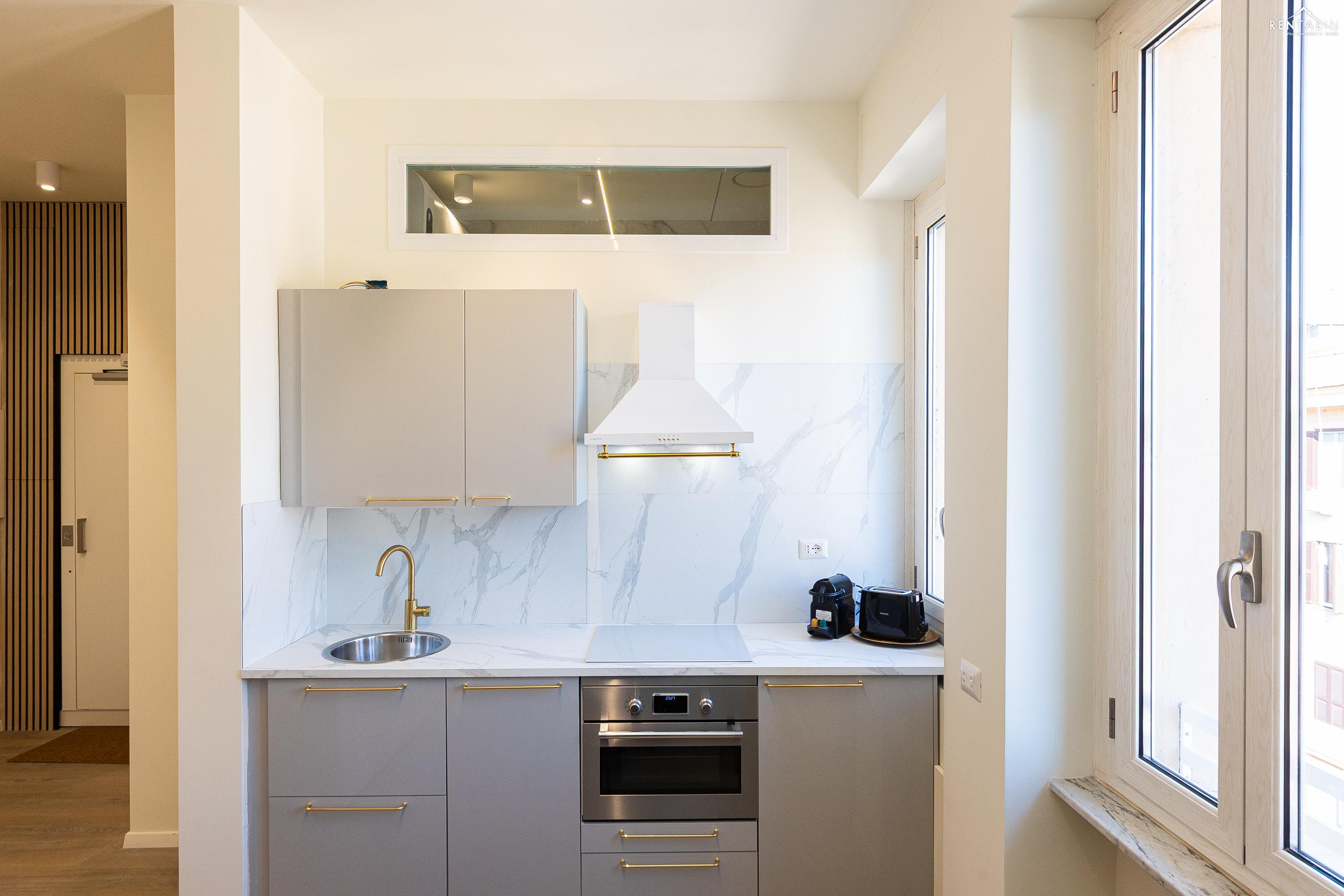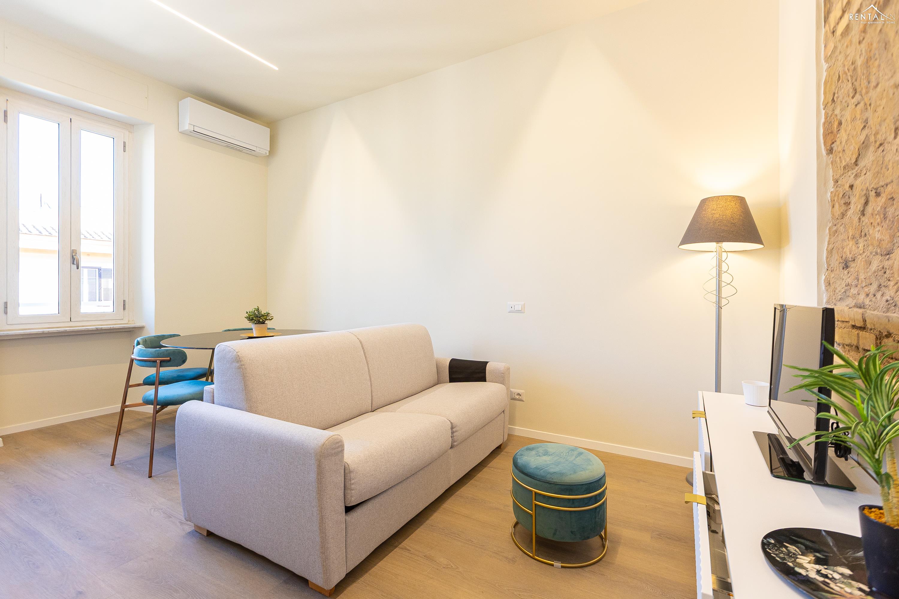 Cet élégant appartement se situe au cinquième étage d'un immeuble avec ascenseur et service de conciergerie, Via Nicolò III, à deux pas de la basilique Saint-Pierre, des musées du Vatican et de la gare de Roma San Pietro. Meublé dans un style moderne et baigné de lumière, il comprend deux chambres doubles confortables, un vaste séjour avec canapé-lit, une kitchenette entièrement équipée, une salle de bains avec douche et des toilettes invités avec douche. La terrasse, située au dernier étage et accessible par l'escalier commun ou par l'ascenseur intérieur, est idéale pour les repas en plein air et la détente au soleil, tout en offrant une vue splendide sur le dôme de Saint-Pierre. Ses équipements, tels que la climatisation, le Wi-Fi, une télévision, un lave-linge et un lave-vaisselle, ainsi que son emplacement central et sa proximité avec un réseau de transports en commun performant, en font le lieu idéal pour un merveilleux séjour dans la Ville Éternelle.
