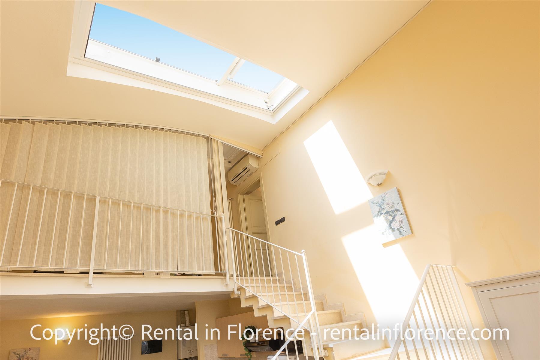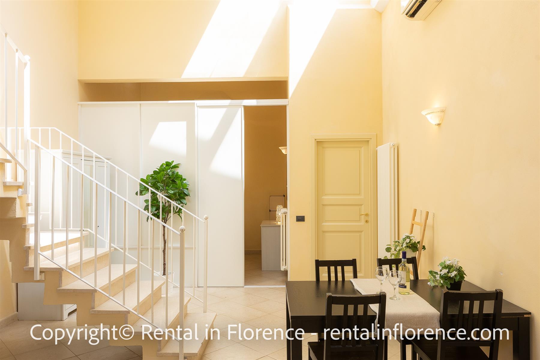 公寓位於 via Ghibellina 著名的 Palazzo Virginio 內的第一個夾層,距離 Bargello 博物館和主要旅遊景點,如 Duomo、Piazza della Signoria、Uffizi Gallery 和 Ponte Vecchio 僅幾步之遙。步行 5 分鐘即可抵達聖十字廣場 (Piazza Santa Croce)。裝飾風格巧妙地結合了經典和現代元素,例如類型和美麗的佛羅倫薩赤土地板。公寓設有客廳、設備齊全的小廚房和餐桌、沙發和電視、帶兩張單人床的雙人臥室和帶淋浴的大浴室。內部樓梯通向第二間臥室,其中包括一張雙人床、一間帶淋浴的連接浴室和一個舒適的陽台。公寓配備免費無線網絡、數字電視、空調、暖氣、熨斗和熨衣板、吹風機。大樓內設有便利的洗衣區,配備洗衣機供所有客人使用。地理位置優越,適合步行或騎自行車遊覽這座城市,是適合在輝煌的佛羅倫薩市逗留的所有類型的解決方案。